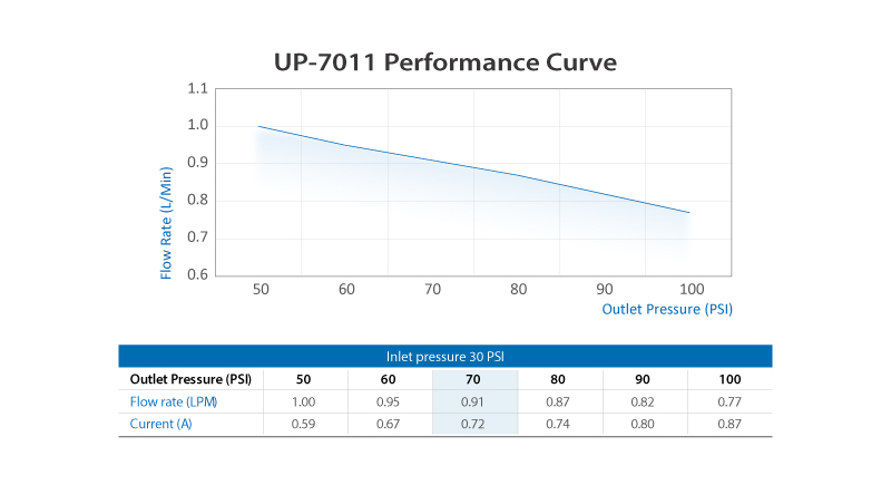 - Booster pump UP-7011 is the updated model of Booster pump UP-7000 / UP-7000A for water purifier applications.
